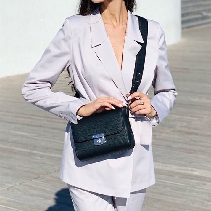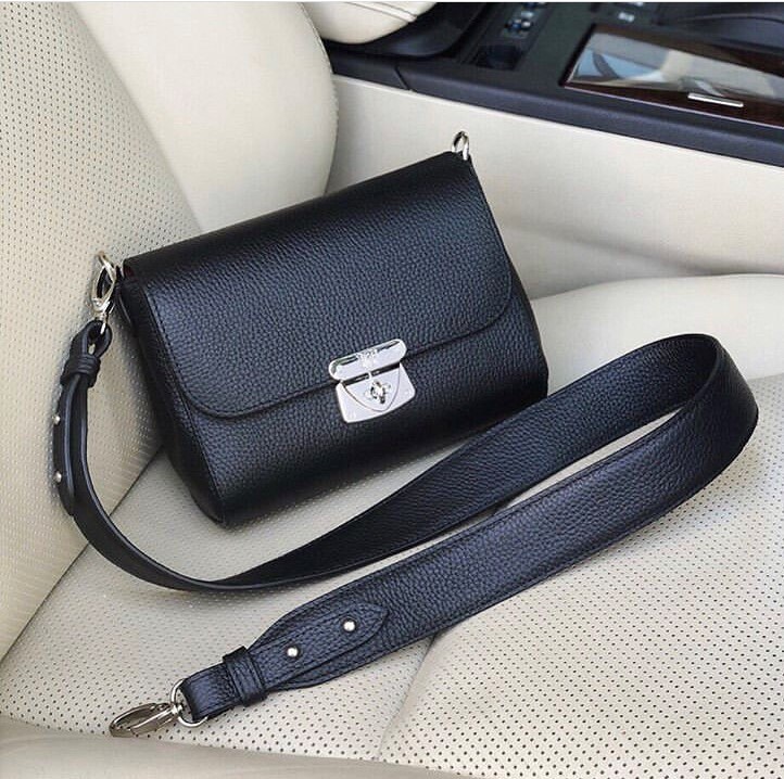 Black genuine leather woman shoulder bag from ukrainian designer Katerina Fox. Fashionable and elegant modern bag KF for bright girls and women. This bag is able to attract attention and highlight your exquisite taste. Inside the bag is one large compartment and a convenient zippered pocket for small items, closes the bag on the clasp. The bag is comfortable to wear on the shoulder or across the shoulder. If you are planning to buy excellent leather bag at an affordable price, this handbag is the right choice!