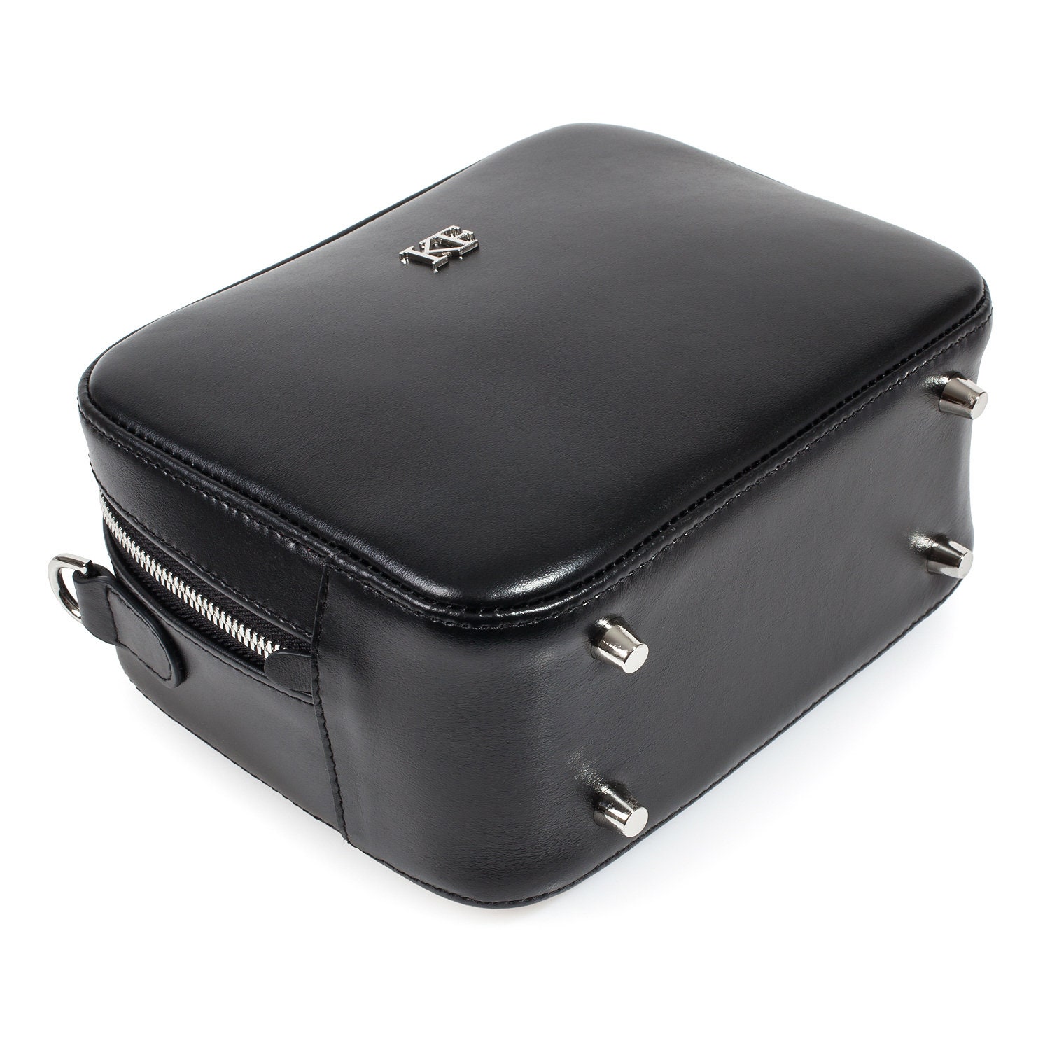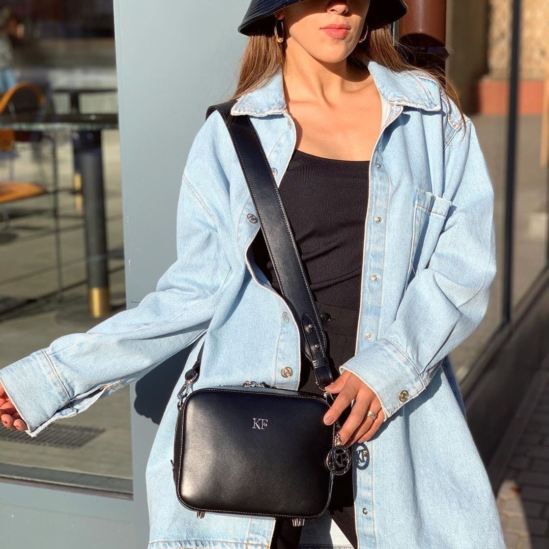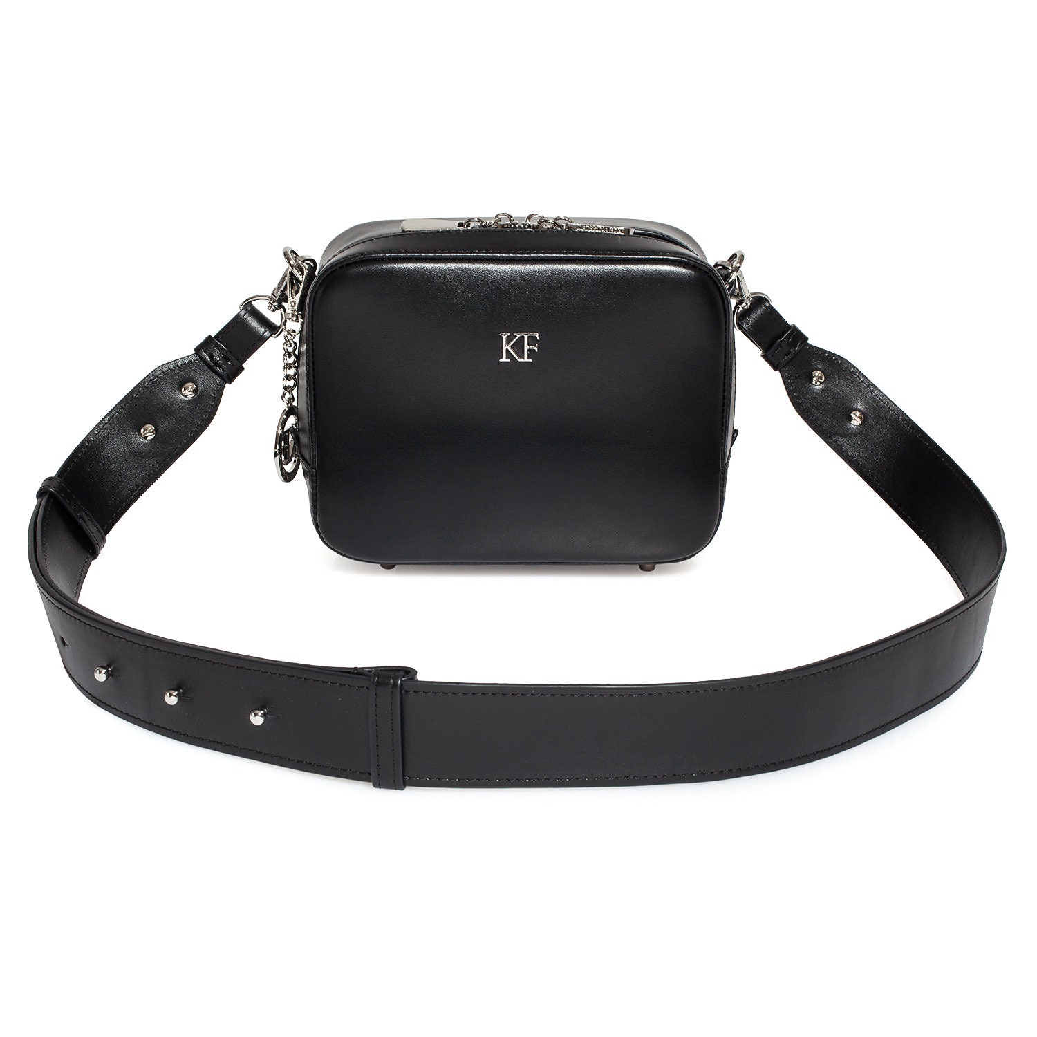 Black genuine leather woman shoulder bag from ukrainian designer Katerina Fox. Fashionable and elegant modern bag KF for bright girls and women. This bag is able to attract attention and highlight your exquisite taste. The internal space of a bag is equipped with one spacious compartment and one zipper pocket. The bag is closed with a zipper. The length of the strap is adjustable. The kit also includes a storage bag.