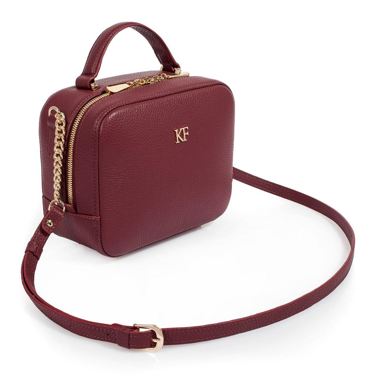 Marsala genuine leather woman shoulder bag from ukrainian designer Katerina Fox. Fashionable and elegant modern bag KF for bright girls and women. This bag is able to attract attention and highlight your exquisite taste. The internal space of a bag is equipped with one spacious compartment and one zipper pocket. The bag is closed with a zipper. The length of the strap is adjustable. The kit also includes a storage bag.
