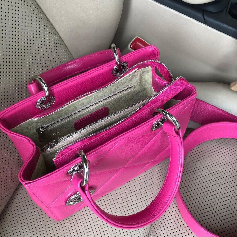 Leather Top Handle Bag, Pink Leather Handbag Top Handle, Women's Leather Bag KF-4364